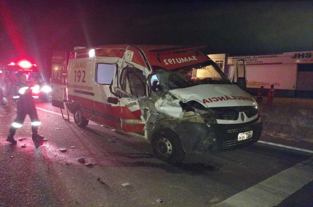 De acordo com informações da PRF, o caminhão que transportava inhame colidiu com a ambulância que realizava o transporte de um paciente. Com o impacto do acidente, a ambulância ficou completamente destruída.