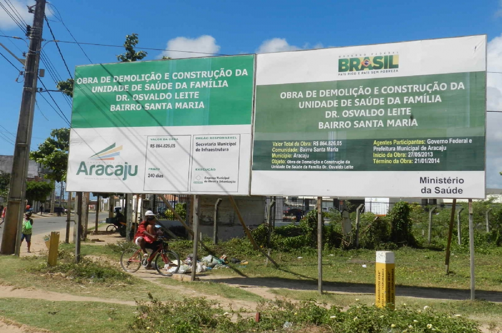 A placa da obra, mostra que a construção e a demolição ficou em mais de R$ 864 mil reais. A demolição e construção da unidade de Saúde Dr. Osvaldo Leite estava marcada para ter início em maio deste ano, e a previsão de conclusão da obra, era para janeiro de 2014. Porém, com o passar dos meses, a população constatou que a obra não vem tendo avanço algum.
