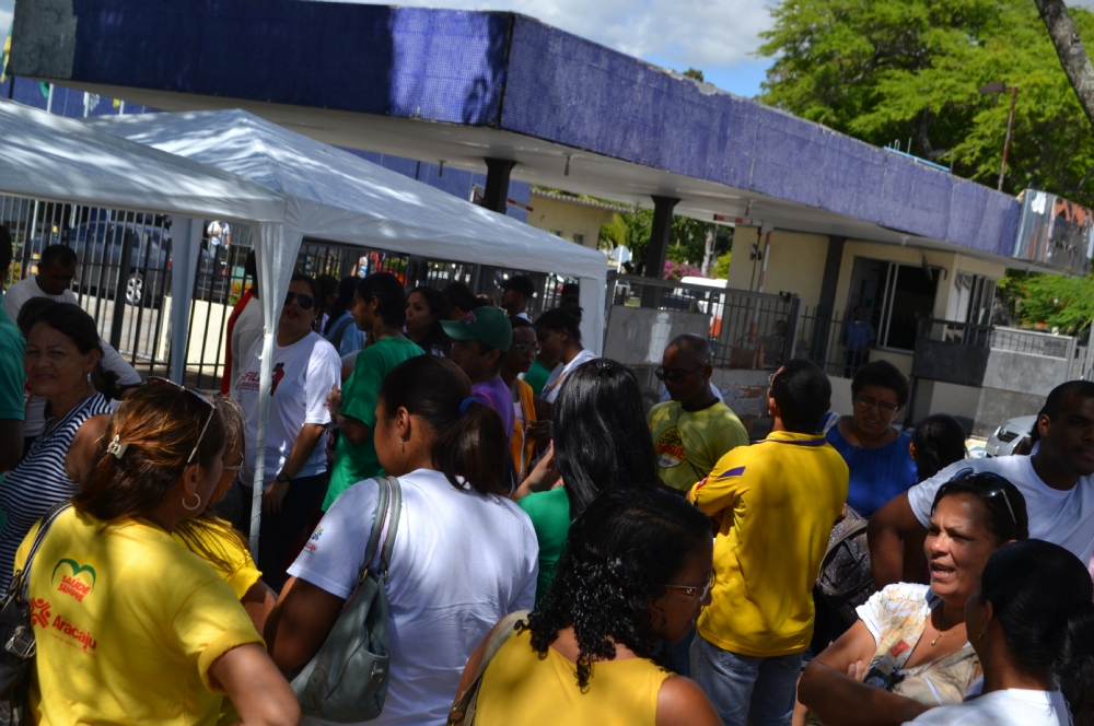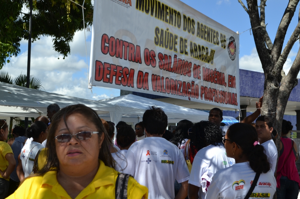 Cerca de 600 agentes comunitários de saúde (ACS) e de combate as endemias (ACE) ocuparam, na manhã desta sexta-feira, 17, a calçada do Centro Administrativo Prefeito Aloísio Campos, sede da Prefeitura Municipal de Aracaju (PMA). Eles reivindicam melhores condições de trabalho e reajuste salarial, conforme o estabelecido na Portaria 260/13, do Ministério da Saúde (MS).