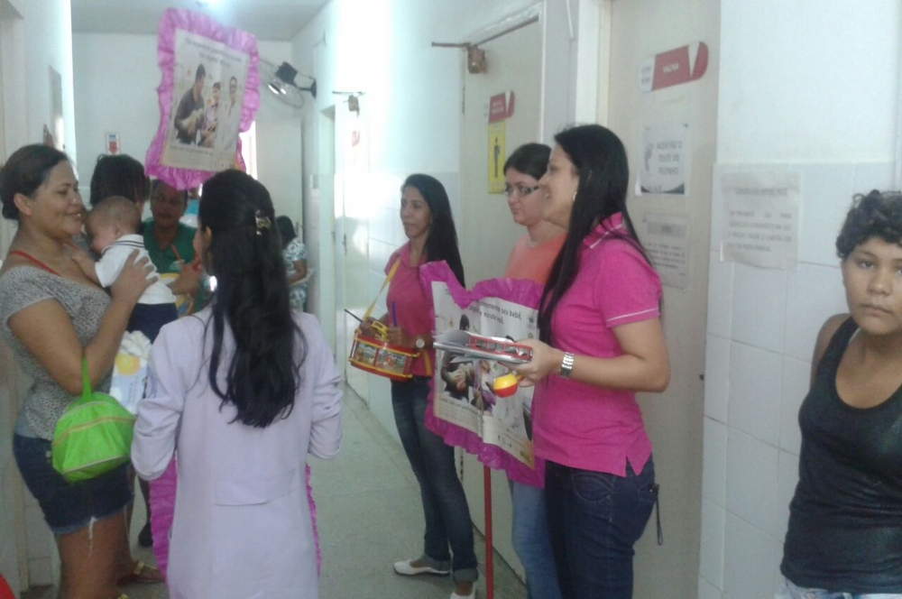 Na USF Hugo Gurgel, os profissionais da farmácia e nutrição percorreram os corredores da realizando uma atividade lúdica onde gestantes eram abordadas e convidadas a participar de um Quiz (jogo de perguntas e respostas) sobre amamentação. Caso a resposta ao desafio fosse correta, a participante ganhava um balão.