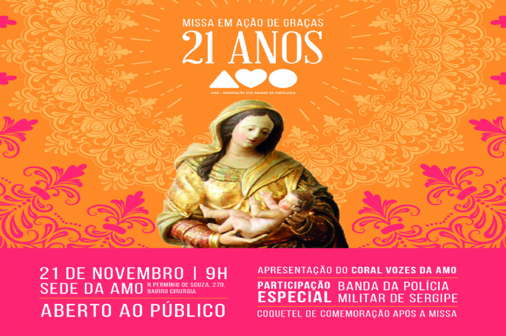 A Associação dos Amigos da Oncologia (AMO) completará nesta terça-feira, seus 21 anos de fundação e, por isso, celebrará uma missa em Ação de Graças à Nossa Senhora da Apresentação – uma das denominações dadas pela Igreja Católica à Maria, mãe de Jesus – que também é a padroeira da cidade de Natal, do Rio Grande do Norte.