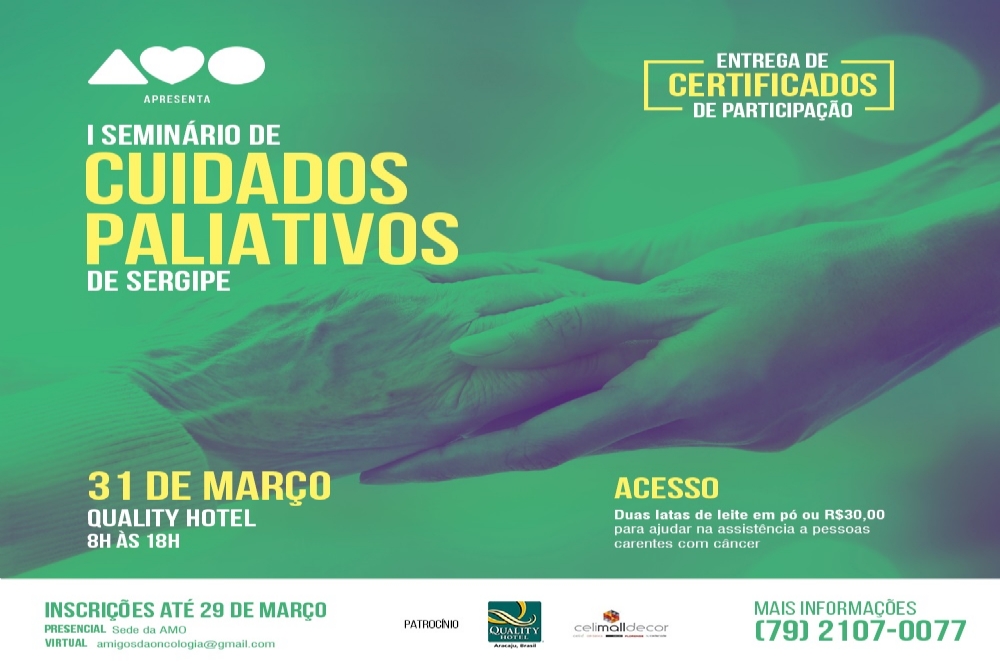 O seminário apresentará abordagens gerais e específicas sobre os cuidados paliativos. Terá a participação efetiva da médica oncologista Priscila Miranda Soares e da médica paliativista Vanderlúcia de França Dultra, que atua hoje nos cuidados paliativos do Hospital de Urgências de Sergipe – Huse. Haverá, também, a participação de diferentes profissionais da saúde e da assistência, contribuindo com o olhar da multidisciplinaridade.