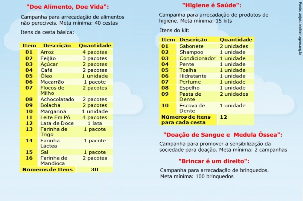 Além das visitas, os "Anjos" têm que desenvolver ao longo do ano campanhas pré-determinadas pelo Instituto. Elas se configuram como de arrecadação, mobilização, e participação e possuem datas específicas de realização. Estas objetivam mobilizar os voluntários, instituições e empresas parceiras, fazer com que as pessoas participem e pratiquem o ato da doação, e, segundo o próprio Instituto, são estratégias de fortalecimento das ações de apoio a crianças com câncer.