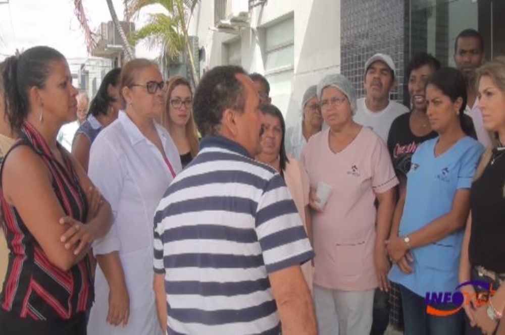 | Funcionários cobram salário e 13º (Foto: Portal Infonet) |