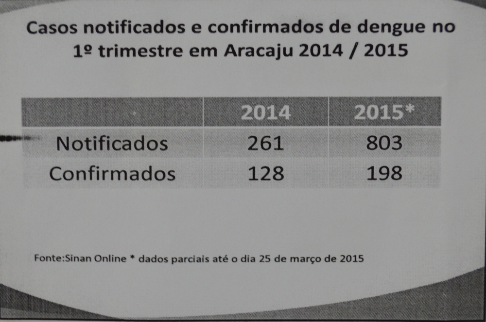 O LIRAa mostra que no 1º trimestre de 2014, foram notificados 261 casos da dengue e confirmados 128. No 1º três meses de 2015, já foram notificados 803 casos e confirmados 198, situação considerada de médio risco [ 1 a 3,9%] ou alerta, principalmente para os bairros Santa Maria, 18 do Forte e 17 de Março.