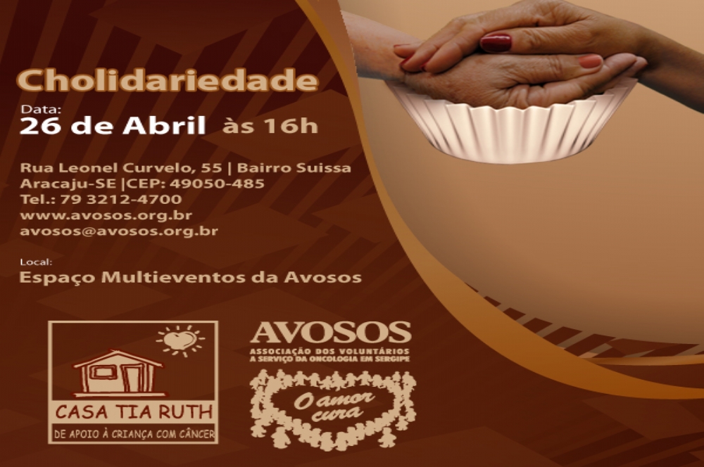No próximo dia 26, a partir das 16 horas, a Associação dos Voluntários a Serviço da Oncologia em Sergipe (Avosos) realizará a 3ª edição do ChoLidariedade. Como o próprio nome propõe, o evento une a paixão por chocolate e o desejo em ajudar o próximo.