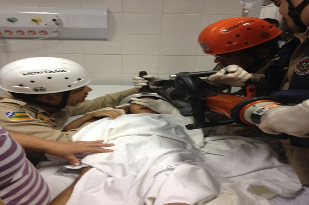 Por volta das 17h30min desta terça-feira, 23, a guarnição do CBMSE foi acionada para atender a uma ocorrência um tanto inusitada: o pequeno Wanderson Rodrigues de Almeida, de apenas 3 anos, colocou uma panela de pressão na cabeça e mesmo com a ajuda da mãe não conseguia retirá-la. A mãe da criança, D. Silvânia, ficou desesperada e ligou para os Bombeiros, que ao chegarem ao local perceberam que a vítima estava muito agitada, impossibilitando fazer a retirada da panela de sua cabeça. A guarnição solicitou o apoio da Unidade de Suporte Avançado (USA) do SAMU, para que o médico pudesse sedar a criança.