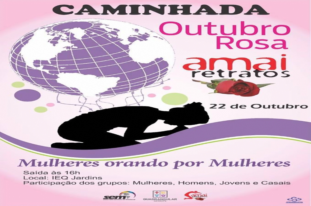 A caminhada, promovida pela Secretaria Estadual de Missões (SEM) da Igreja do Evangelho Quadrangular (IEQ/SE) faz parte do movimento de mulheres orando por mulheres e reúne toda a família. Você é nosso convidado para participar do movimento que sairá às 16h da avenida Pedro Valadares, 999. Mais informações através do (79) 3217-8477.