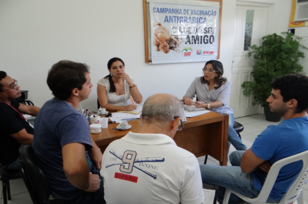 Preparativos para a Campanha de Vacinação contra Raiva em Aracaju foram discutidos durante reunião que aconteceu nesta quarta-feira, 17 de julho, na sede do Centro de Controle de Zoonoses (CCZ) no bairro Capucho. Participaram do encontro a coordenadora do CCZ, Roseane Nunes, juntamente com técnicos e veterinários do Centro e a gerente do Núcleo de Endemias da Secretaria do Estado da Saúde, Sidney Sá.