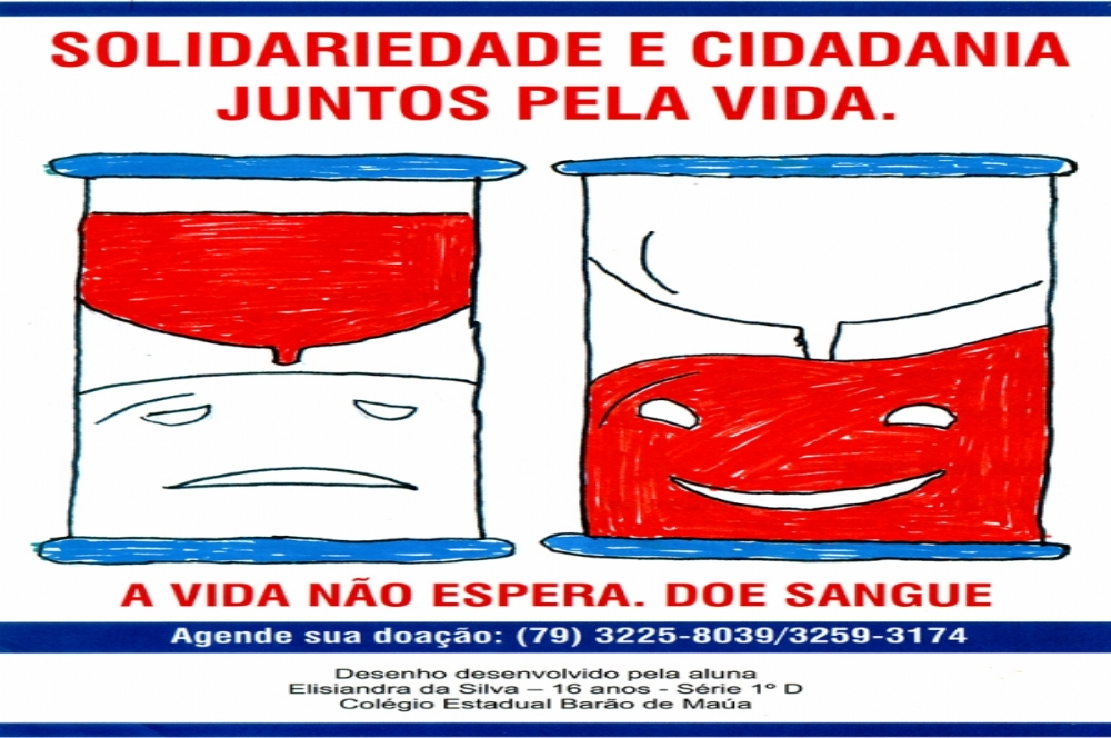 “A gente pode ser herói de muitas pessoas que necessitam de sangue para sobreviver. Doar sangue é um ato de amor e solidariedade. Se cada um der uma pequena parcela de contribuição, evitaremos muitas mortes”. O raciocínio consciente e inteligente é da jovem Elisiandra da Silva, 16 anos, aluna do 1º ano do Colégio Estadual Barão de Mauá, vencedora do Concurso de Cartaz promovido pelo Centro de Hemoterapia de Sergipe (Hemose).