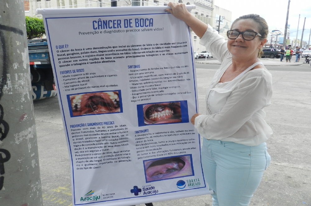 A população sergipana recebeu orientações nesta segunda-feira, 19, sobre a a prevenção do câncer de boca. A ação, que aconteceu nas regiões dos mercados centrais em Aracaju, foi promovida pela Secretaria Municipal de Saúde (SMS), e contou com a distribuição à população de panfletos, além de explicações sobre a doença.