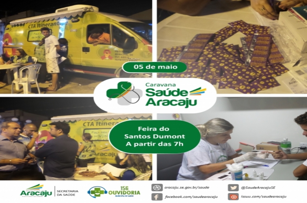 Nesta quinta-feira, 5, a Prefeitura de Aracaju marcará presença em mais uma feira livre da capital com a Caravana Saúde Aracaju. Nesta edição, o bairro escolhido foi o Santos Dumont, na zona norte da cidade. A partir das 7h, equipes da Secretaria Municipal da Saúde (SMS) vão estar no local, ofertando diversos serviços de saúde e fazendo o trabalho educativo e de orientação.