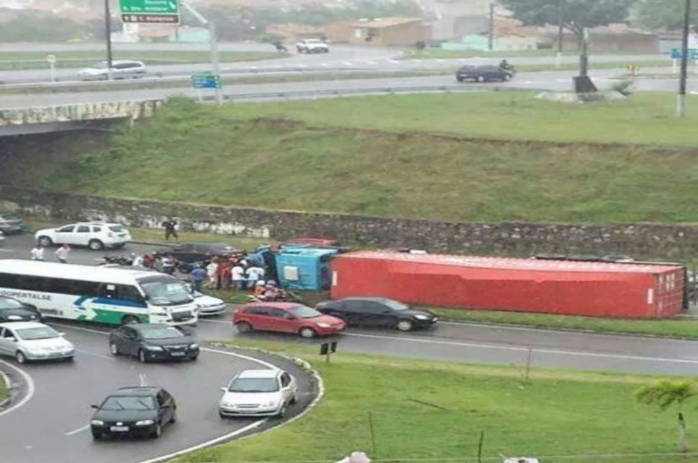 Continua em estado grave o condutor da carreta de placa BWT- 2779/ Campinas (SP) que tombou na manhã da última quinta-feira, 11, na avenida Tancredo Neves, nas proximidades do Fórum Gumercindo Bessa. O condutor foi identificado como sendo Jonathan Rodrigues da Silva, 25 anos.
