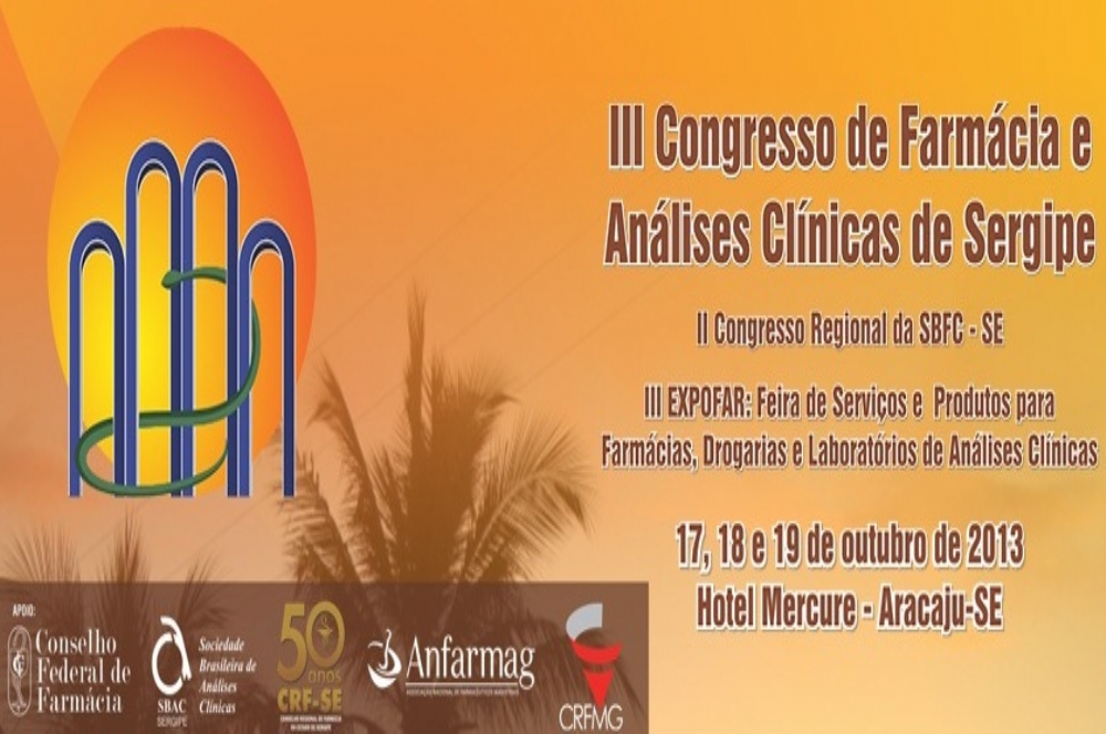A Sociedade Brasileira de Farmácia Comunitária Regional Sergipe (SBFC/SE), com apoio do Conselho Regional de Farmácia de Sergipe (CRF/SE), do Conselho Federal de Farmácia (CFF) e da SBFC Nacional realizará, nos dias 17, 18 e 19 de outubro, em Aracaju, a 3ª edição do Congresso de Farmácia e Análises Clínicas (III CFAC).