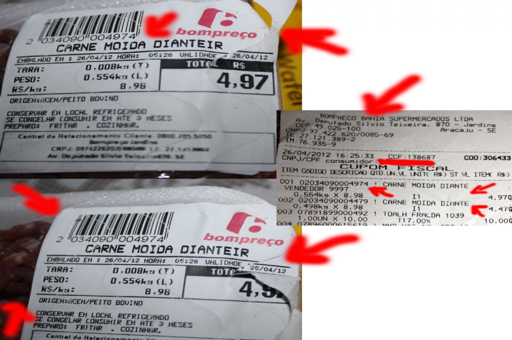 “Passei no caixa, comprei todos os produtos que eu quis comprar, cheguei até o estacionamento abrir o meu carro e tirei a primeira etiqueta, não consegui, pois estava bem selado, verifiquei a segunda carne, quando eu tirei a data de validade era dia 25, uma fraude sínica, duas etiquetas duplificada, uma em cima da outra. Eu voltei ao supermercado, me dirigi até a lanchonete e liguei pra policia solicitando que viesse dois agentes policiais pra fazer um flagrante daquilo, a situação se tornou mais insustentável, enquanto eu aguardava a chegada da polícia, os gerentes me cercaram eu fiquei acuado. O que fica claro é que eu estou embasado, eu falo com propriedade, agora o que me deixa indignado é a situação insustentável da gente entender uma grande empresa não se pronunciar, dela não emitir uma nota pública, dela não vim até Aracaju conversar com os consumidores”, finaliza