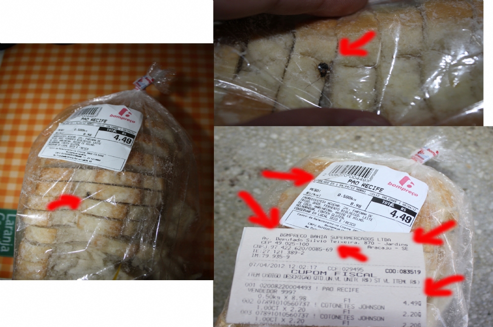 Presuntos vencidos e maçã estragada foram uma das irregularidades descritas por Thales Brandão. “Circulando pelo Bompreço eu encontrei um pão com uma barata dentro, ele é um pão lacrado, com o lacre do Bompreço todo certinho e a barata tava lá dentro, circulando pela parte de frutas eu encontrei uma maça que aparentemente estava estragada, com morfo e que não constava a data de vencimento. Ainda no mesmo ambiente eu encontrei uva passada com a data de validade vencida e já morfada”, garante.