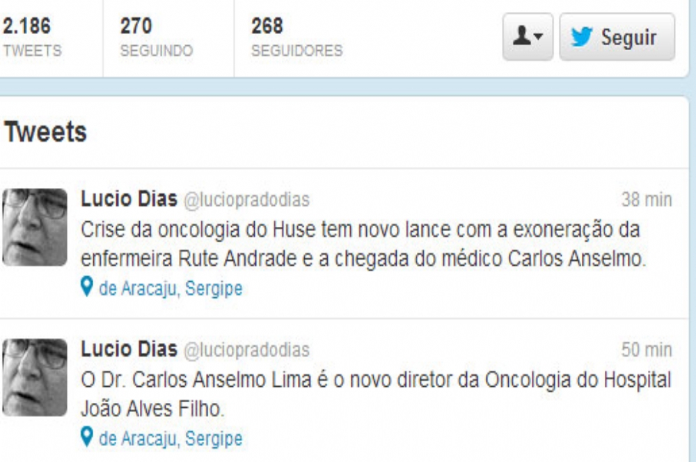 A coordenadora do setor de Oncologia do Hospital de Urgência de Sergipe (Huse), Rute Andrade, foi exonerada de seu cargo. A informação foi divulgada no Twitter na tarde desta segunda-feira, 4, no perfil do médico Lúcio Dias, e confirmada por fontes do Portal Infonet. “Crise da oncologia do Huse tem novo lance com a exoneração da enfermeria Rute Andrade e a chegada do médico Carlos Anselmo”, afirma o médico na rede social.