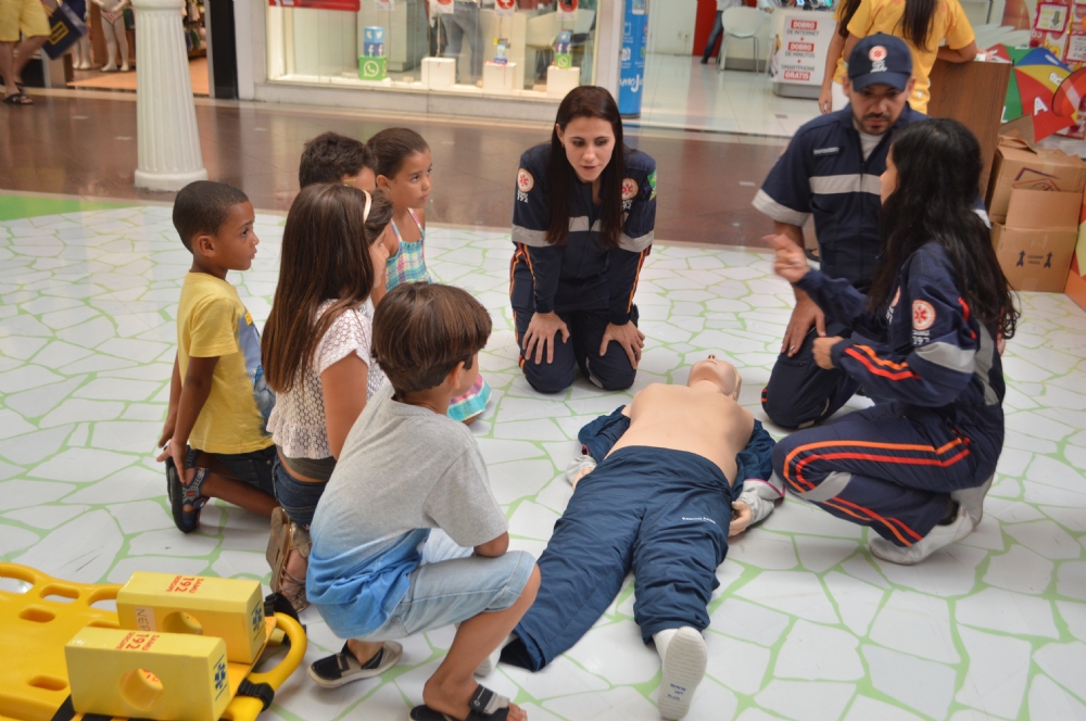 Após participarem de simulações de salvamento com equipes do Smu, as crianças que estiveram no Shopping Jardins na tarde desta sexta-feira, 29, receberam um kit com camisa e lanche e assistiram vídeos sobre a importância do Samu no trabalho de salvar vidas.