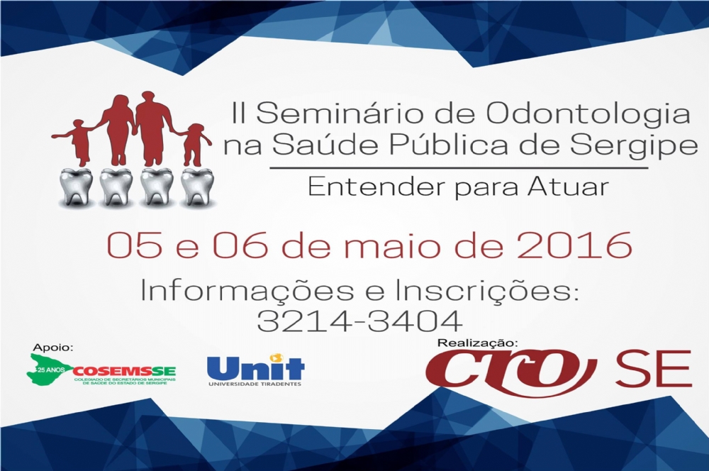 Nos dias 05 e 06 de maio, quinta e sexta-feira desta semana, o Conselho Regional de Odontologia de Sergipe (CRO-SE) realiza o II Seminário de Odontologia na Saúde Pública de Sergipe. Com o tema “Entender para Atuar”, o evento tem como proposta levantar o debate sobre o atendimento odontológico no serviço público de atenção à saúde, além de discutir as oportunidades de melhoria existentes no sistema.
