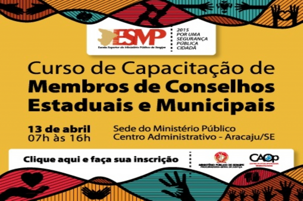 Sabendo da importância do conhecimento sobre a legislação nacional acerca do funcionamento dos Conselhos como instrumento de controle social, a Escola Superior do Ministério Público de Sergipe, em parceria com o Centro de Apoio Operacional de Defesa dos Direitos Humanos (idosos e pessoas com deficiência), realizarão o Curso de Capacitação de Membros de Conselhos Estaduais e Municipais. O evento conta ainda com o auxílio de três outros Centros de Apoio, em áreas de atuação ministerial que preveem os Conselhos como importantes atores de sua atuação, quais sejam, os C.A.Ops. da Infância e Adolescência, Direitos da Mulher, e o do Terceiro Setor.