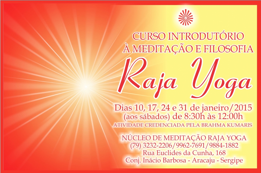 O curso Introdutório à Meditação Raja Yoga ocorrerá aos sábados, de 8h30 às 12h, na sede do Núcleo de Meditação Raja Yoga, localizada na rua Euclides da Cunha, 168, no conjunto Inácio Barbosa, na capital sergipana.