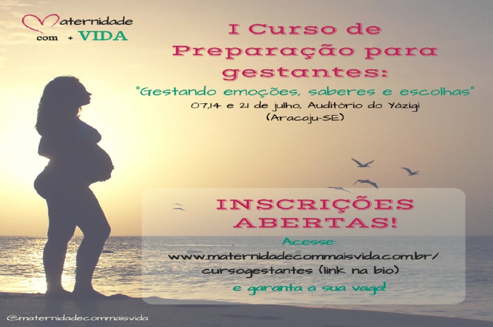 Disponibilizar informações de qualidade e promover reflexões e orientações que contribuam no processo de preparação para gestação, parto e puerpério mais humanizados na cidade de Aracaju. Esse é o principal objetivo do I Curso de preparação para gestantes: ‘Gestando emoções, saberes e escolhas’, realizado nos dias 7, 14 e 21 de julho, das 8h às 12h30, no auditório do Espaço Cultural do Yázigi.