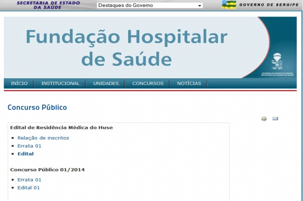 A Secretaria de Estado da Saúde (SES), por meio da Fundação Hospitalar de Saúde (FHS) e da Fundação Estadual de Saúde (Funesa), torna público a lista de inscritos do processo seletivo de Residência Médica no Hospital de Urgência de Sergipe (Huse) para o ano de 2015. As inscrições foram gratuitas.