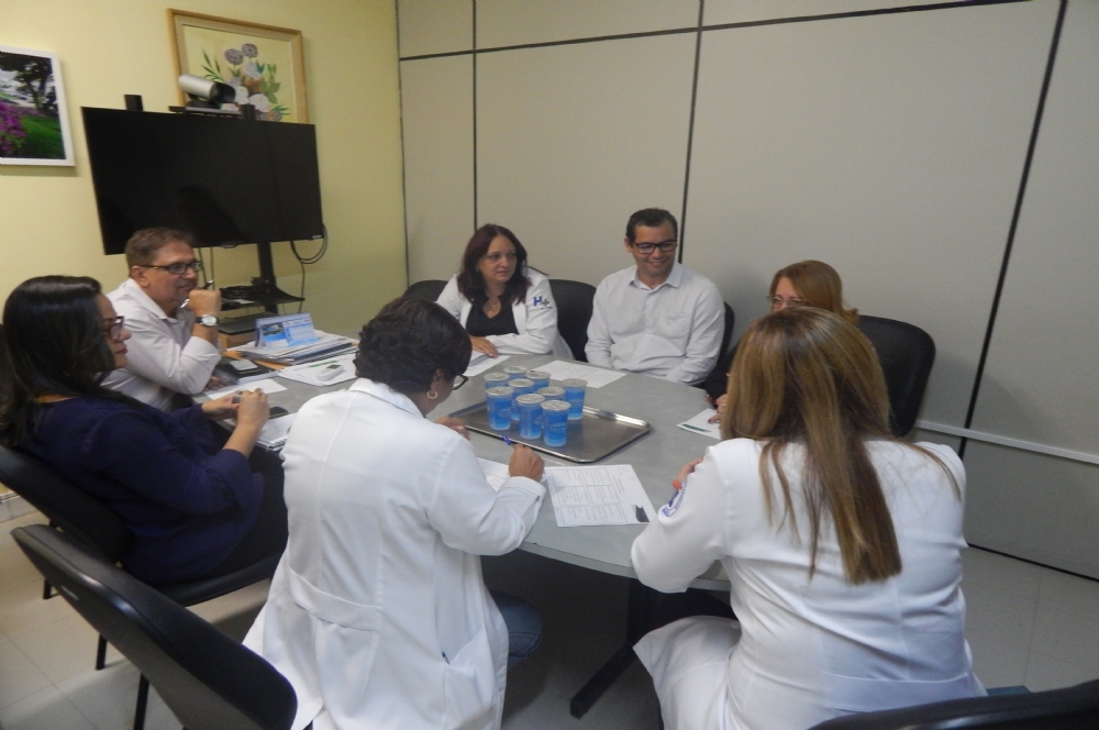 Além da superintendente e da secretária, estiveram na reunião o gerente administrativo Edélzio Costa Júnior, a chefe da Divisão de Enfermagem, Flávia Janólio; a chefe da Divisão Administrativa Financeira, Aline Cardeal, a chefe do Setor de Apoio Diagnóstico, Flávia Costa e o Relações Públicas Ailton Rocha.