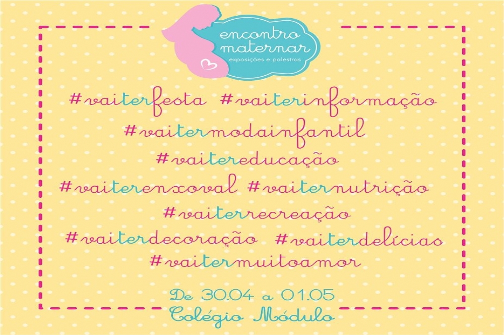 Mamães que aguardam a tão esperada chegada do bebê e aquelas que já estão com o pequenino nos braços têm uma super atração nos dias 30 de abril e 1° de maio, no Colégio Módulo. Com mais de 20 expositores, e cerca de 20 palestras, o evento traz novidades e tendências do mundo materno-infantil e discute temas relacionados a uma nova forma de encarar a maternidade.