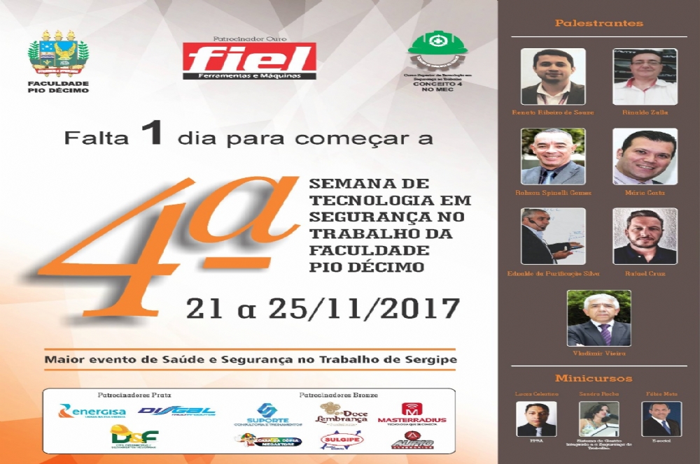 Por isso, a partir desta terça-feira, 21, tem início a 4ª Semana de Tecnologia em Segurança no Trabalho, a ser promovida de 21 a 25 de novembro, pela Faculdade Pio Décimo. O objetivo do evento, que já se tornou referência no assunto em âmbito nacional e com resultados positivos no que tange a redução do número de acidentes do trabalho, conforme informações doAnuário Estatístico da Previdência Social (AEPS, 2026), é a disseminação de informações acerca da prevenção de acidentes do trabalho e doenças ocupacionais, além de tratar de assuntos relevantes a práticas do dia a dia, legislação trabalhista, conceituação, ferramentas e cursos de aperfeiçoamento.