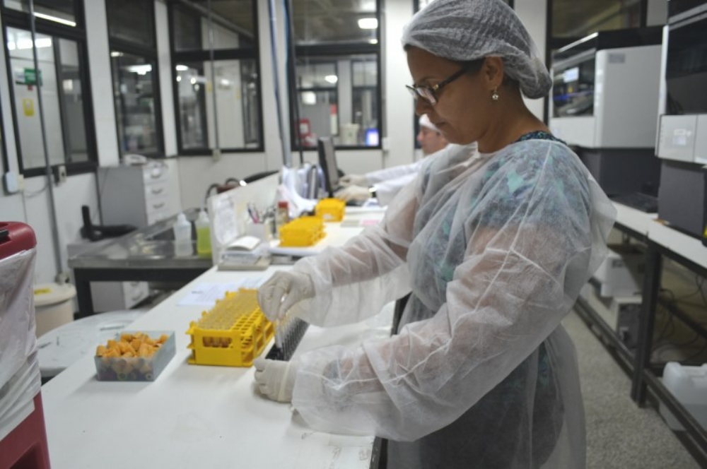 | Preparação dos tubos de ensaio para análise (Foto: SES) |
