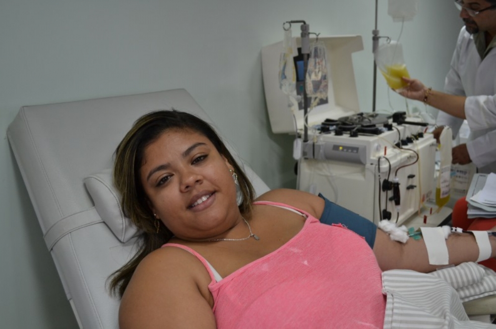 Ela explicou também que a coleta de sangue padrão dura em média quinze minutos, enquanto a coleta de plaquetas, separadamente, feita através da máquina de aférese dura cerca de uma hora e trinta minutos. O doador é conectado à máquina, através de punção venosa, ou seja, uma veia do doador é selecionada, uma agulha alcança essa veia e, por meio de um cateter, o material coletado é levado à máquina.