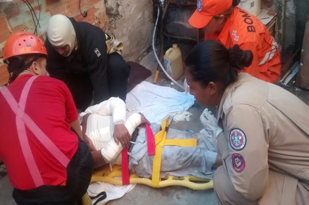 Idoso foi socorrido e levado ao Huse (Fotos: major Hector Bombeiros)