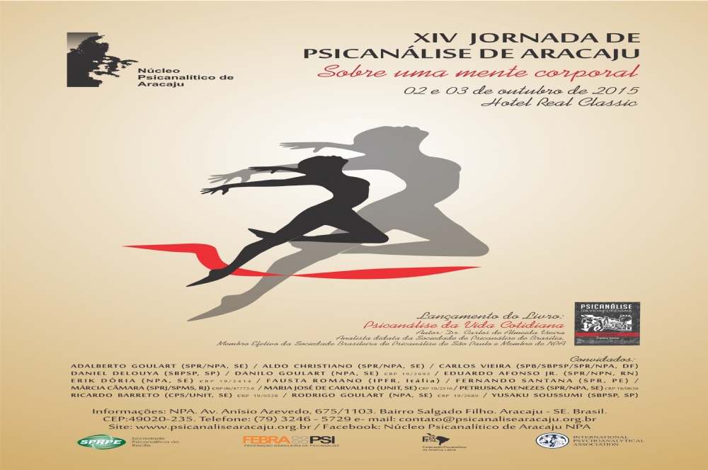 Nos dias 2 e 3 de Outubro será realizada a XIV Jornada de Psicanálise de Aracaju, apresentando em sua programação atividades diversas como conferências, mesas de discussão e cursos. O evento, organizado anualmente pelo Núcleo Psicanalítico de Aracaju (NPA), traz para essa edição a temática “Sobre uma mente corporal”. O Hotel Real Classic sediará todas as atividades.