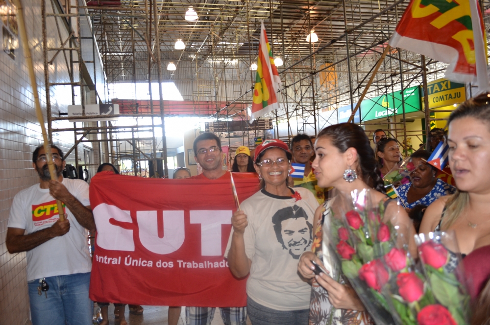Vinte e nove médicos cubanos e um colombiano que formam o segundo ciclo do Programa “Mais Médicos” chegaram no final da tarde deste sábado, 26 ao Aeroporto de Aracaju em um vôo da Força Aérea Brasileira (FAB). Eles foram recepcionados por gestores da Secretaria de Estado da Saúde (SES), apoiadores do Ministério da Saúde, integrantes da Central dos Trabalhadores do Brasil (CTB/SE), Central Única dos Trabalhadores (CUT/SE), Movimento dos Trabalhadores Sem Terra (MST), entre outras lideranças sindicais.