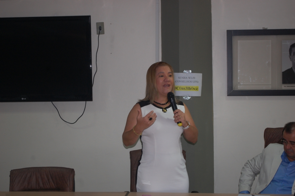 Durante pronunciamento na Sala dos Conselhos da UFS, a prefeita de São Cristóvão destacou que continuará reivindicando outras parcerias com a Universidade.