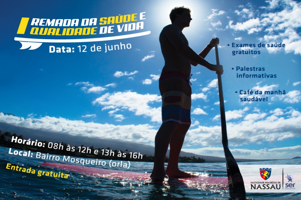 Já é de conhecimento de todos que a prática de esporte é um dos fatores responsáveis pela prevenção de doenças, manutenção da saúde e qualidade de vida. E é com o objetivo de contribuir para promoção do esporte e dos cuidados regulares com a saúde que, alunos da Faculdade Maurício de Nassau realizam no próximo domingo, 12, a partir das 8h, na Orla Pôr do Sol, a I Remada da Saúde e Qualidade de Vida.