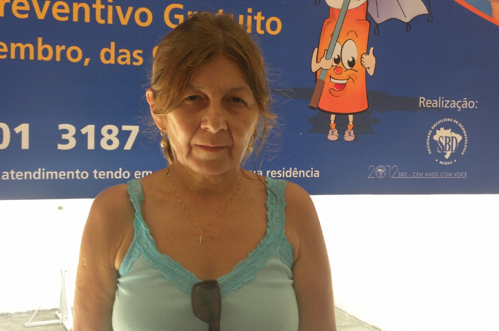 A auxiliar de enfermagem Sônia Barros fez o exame pela primeira vez. “Já fui para dois dermatologistas e eles nunca me pediram este exame. Então, vi na televisão e vim por conta própria. Não é sempre que a gente tem essa oportunidade de conversar e tirar dúvidas sobre o câncer de pele”, opina.