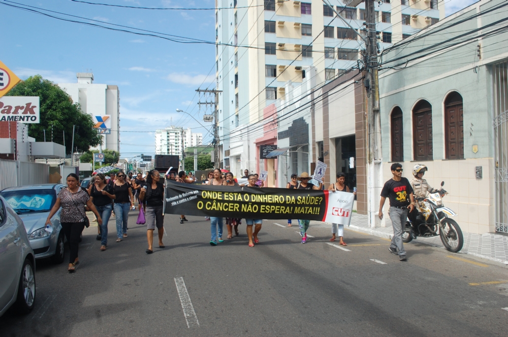 Pacientes em tratamento contra o câncer no Hospital de Urgência de Sergipe (Huse) realizaram na manhã desta terça-feira, 8, uma marcha pelo centro de Aracaju, com o objetivo de denunciar a falta de assistência ao paciente com câncer pelo Sistema único de Saúde (SUS). O ato, promovido pelo “Movimento de Mulheres pela Vida”, acontece em alusão ao Dia Nacional de Combate ao Câncer, que é lembrado nesta terça.
