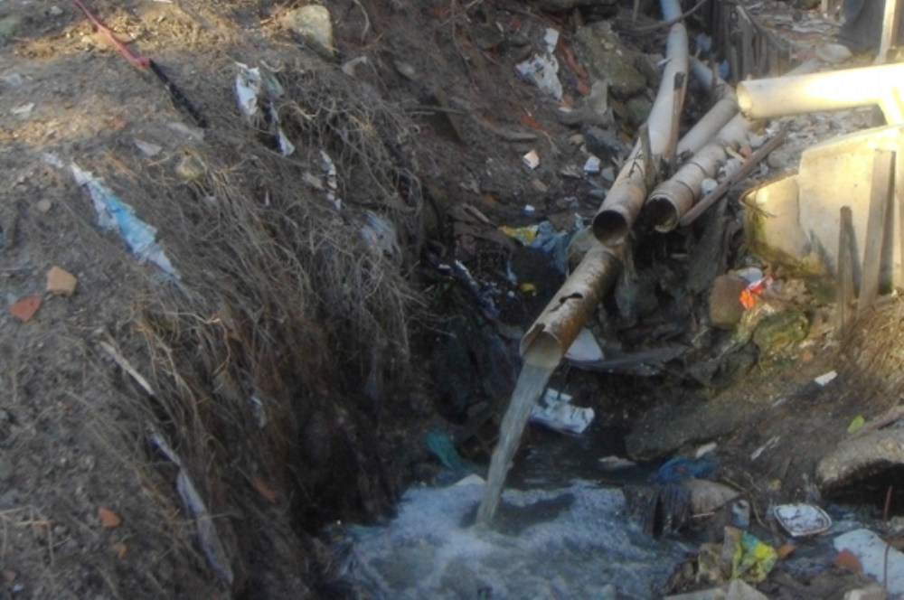 | Esgoto lançado na invasão (Foto extraída do dossiê do professor Fernando Leite) |