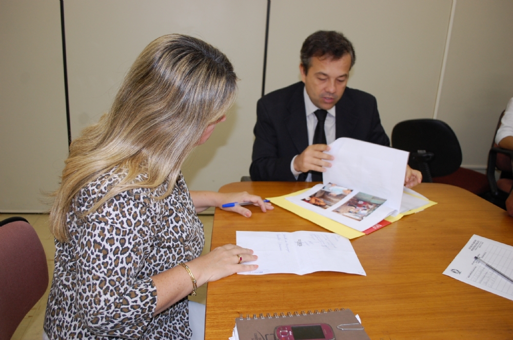 | Fábio Viegas mostra dossiê à representante da Secretaria Municipal de Saúde (Foto: Cássia Santana/Portal Infonet) |