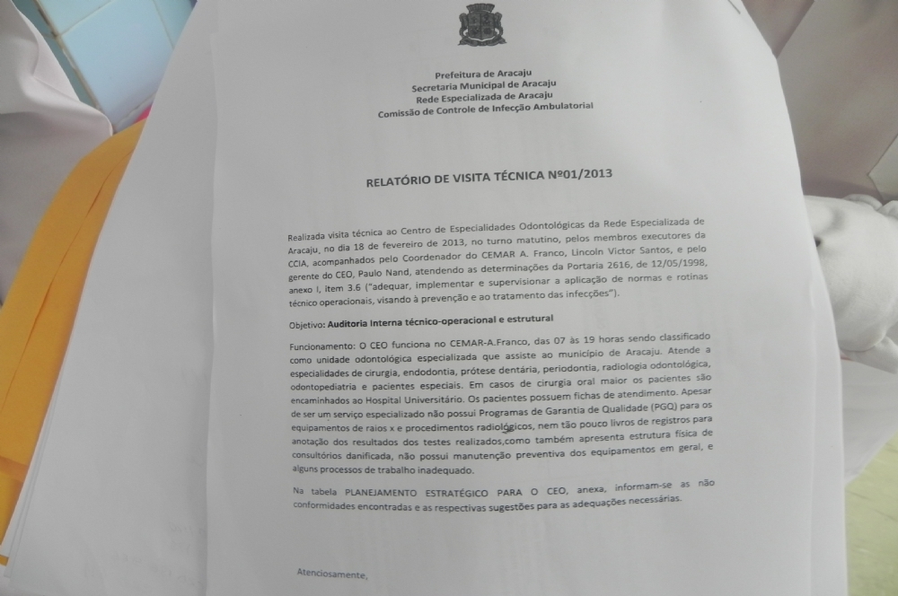 Em forma de protesto, os odontologistas se reuniram na manhã de hoje no CEO, para relatar os problemas. Segundo os profissionais, há 10 anos, o local apresenta os problemas, já que foi criado sem estrutura para funcionar como centro odontológico. Ainda segundo a classe, a maioria dos problemas já foi constatada pela comissão de infecção da Prefeitura de Aracaju, mas nada foi feito para mudar a situação.