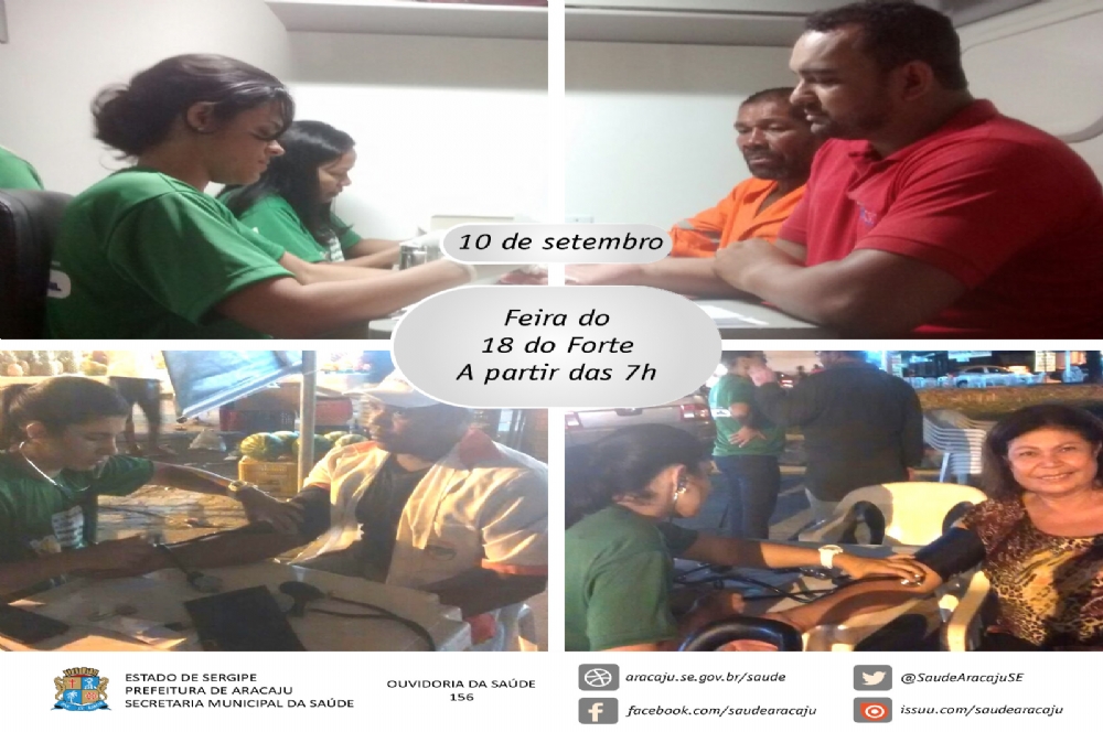 A feira livre do bairro 18 do Forte recebe neste sábado, 10, a Caravana Saúde Aracaju. A ação, promovida pela Secretaria Municipal de Saúde (SMS), vai oferecer diversos serviços de promoção à saúde para a comunidade e também para os feirantes, a partir das 7h. O Centro de Testagem e Aconselhamento (CTA) Itinerante estará presente realizando testes rápidos de HIV, Hepatites e Sífilis.