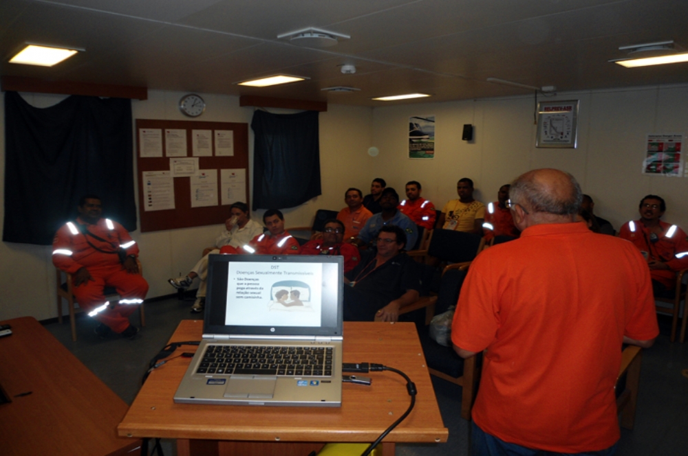 De acordo com o técnico de segurança da plataforma, Marcio Jean Menezes, a realização da SIPAT faz parte da Norma Regulamentadora de Saúde do Trabalho (NR30), que determina a inclusão do tema DST/Aids na discussão. "Conheço o trabalho de Dr. Almir e gosto bastante de suas palestras. Elas sempre trazem novas informações", explicou o técnico de segurança da plataforma.