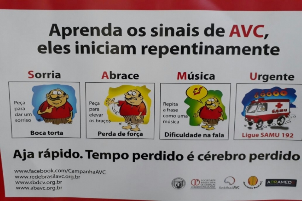 De acordo com a residente da UFS, Mariele Rosário, 26, é de extrema importância estar atento aos sinais e sintomas do AVC, como boca torta, perda de força, dificuldade na fala e dor de cabeça súbita e intensa sem causa aparente. “Cada minuto poderá fazer diferença lá na frente, na hora da recuperação. Tempo perdido é cérebro perdido. Quanto mais rápido os sintomas forem identificados e a pessoa encaminhada ao hospital, menores serão as sequelas”, enfatizou.