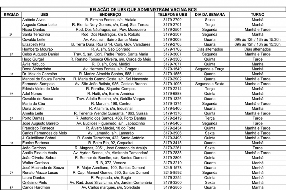 | As Unidades Básicas de Saúde ofertam a BCG (Foto: SMS) |