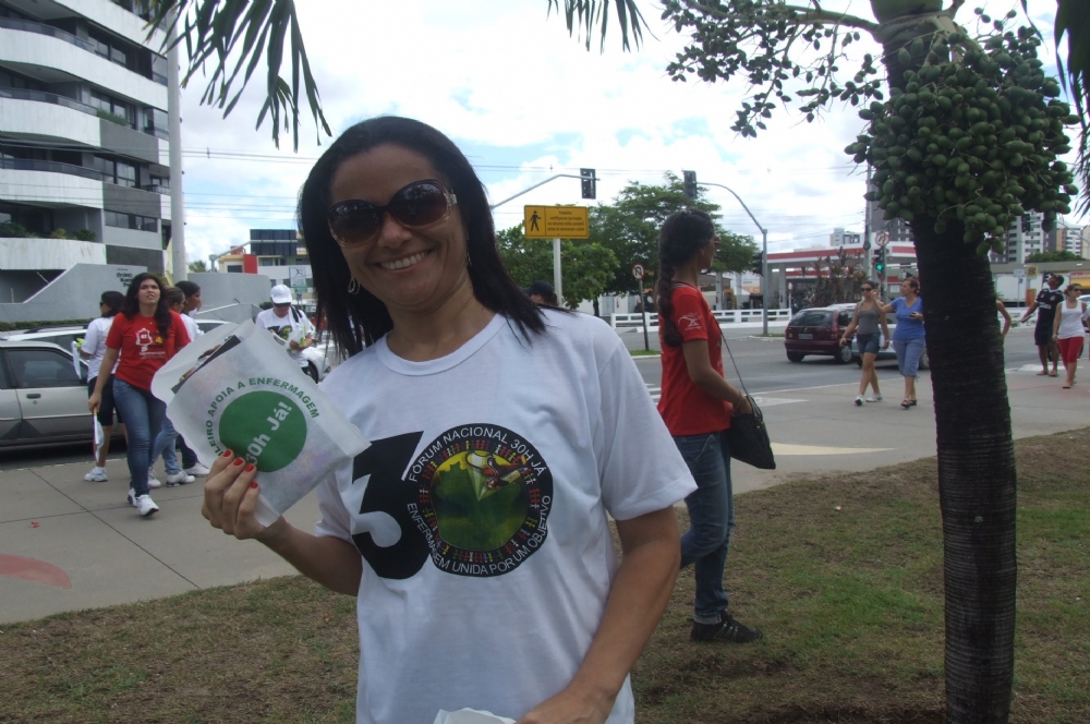 Os profissionais de enfermagem também estão realizando durante esta manhã panfletagem no sinal. “O objetivo é mobilizar os representantes para a redução da jornada de trabalho. Estamos oferecendo um kit com várias informações sobre a nossa profissão, além de uma carta apresentando os principais motivos para esta redução”, informa a enfermeira Patrícia Oliveira.