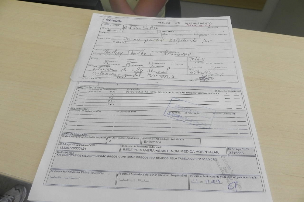 Segundo Jadson, a problemática se deu no Ipes, no mês de maio, no momento da liberação dos procedimentos necessários para a realização da cirurgia médica. Foram pedidos pelo médico 10 peças, sendo que apenas 7 foram autorizados pelo Ipes.