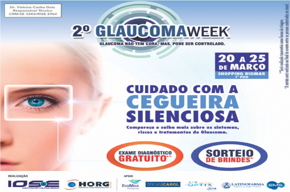 Em virtude da Semana Mundial do Glaucoma será realizado entre os dias 20 e 25 de março de 2017 no Shopping Rio Mar, o 2º Glaucoma Week. O evento tem como objetivo chamar a atenção da população para o Glaucoma conhecido como “Cegueira Silenciosa”. No local do evento haverá um stand com a divulgação de informações sobre a importância da detecção precoce, sintomas e riscos do Glaucoma, além de exames gratuitos de tonometria.