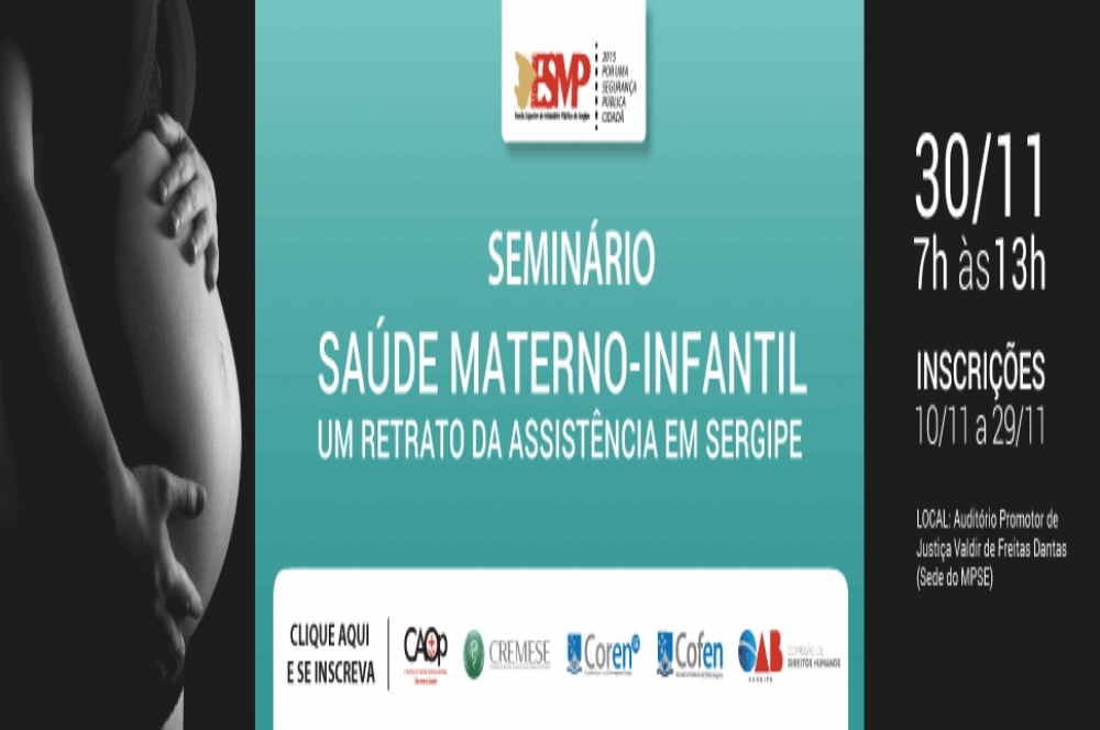 A Escola Superior do Ministério Público de Sergipe e o Centro de Apoio Operacional dos Direitos à Saúde, em parceria com o Conselho Regional de Medicina de Sergipe (CREMESE), Conselho Regional de Enfermagem (COREN) e a Ordem dos Advogados do Brasil (OAB-SE), realizarão o Seminário Saúde Materno-infantil – Um Retrato da Assistência em Sergipe.